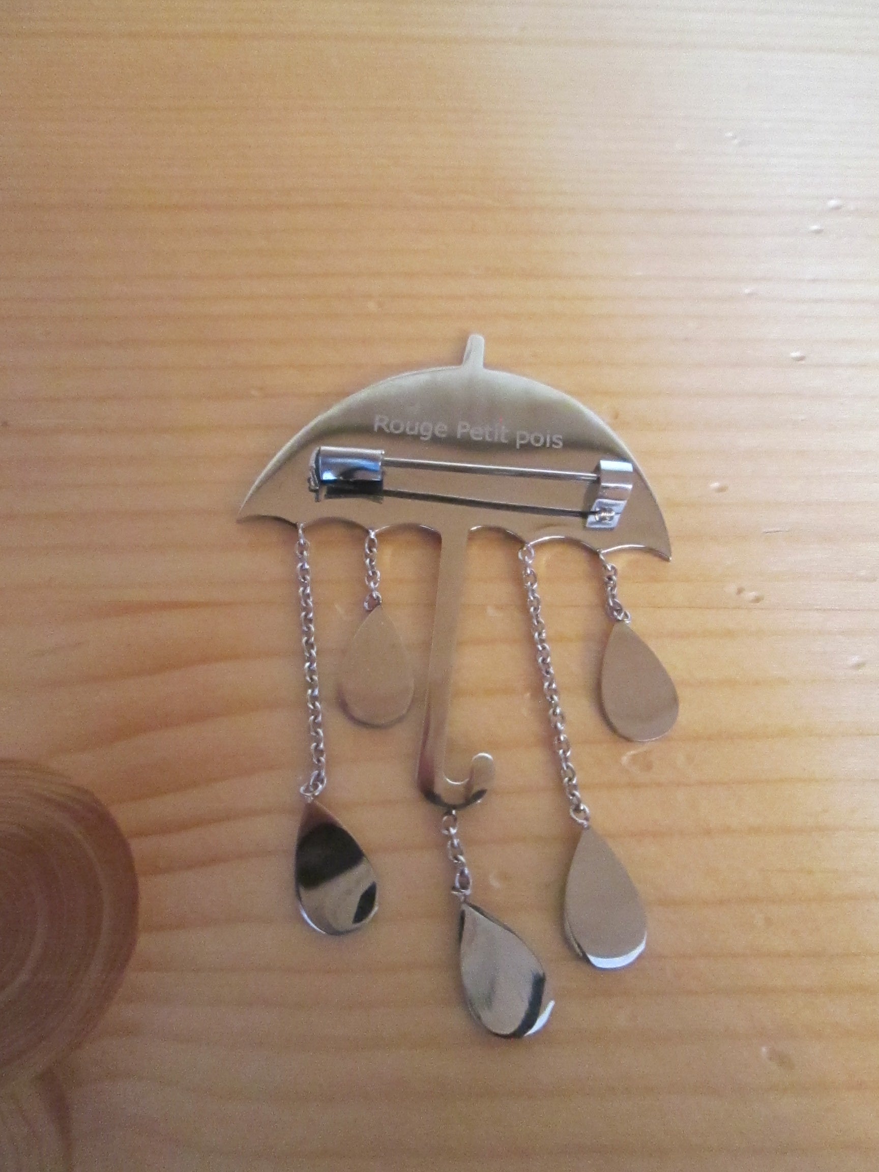 broche rouge petit pois modèle « parapluie »