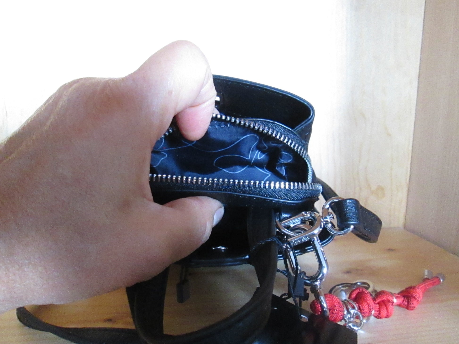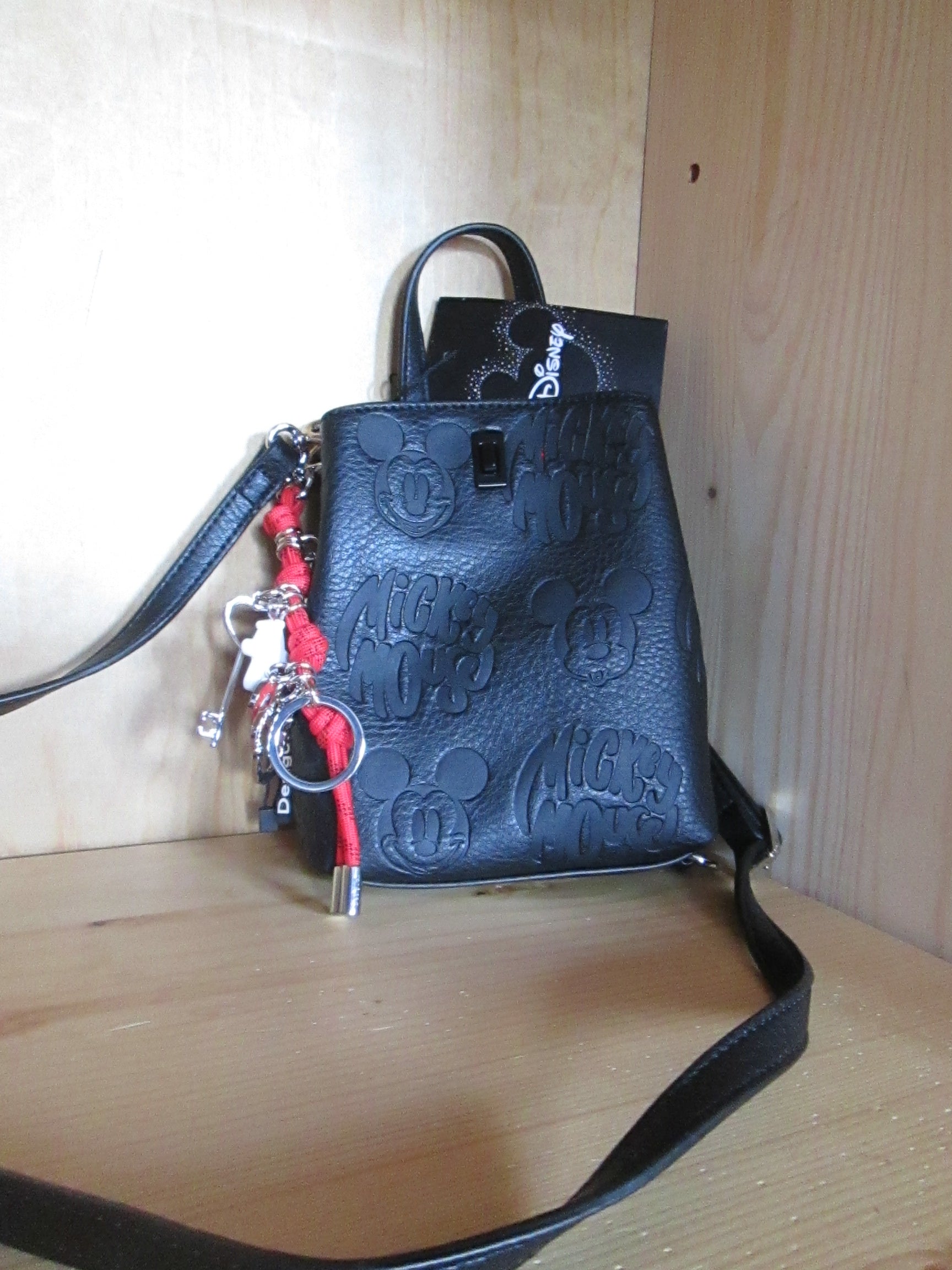 en tissu effet cuir, broderies, fermeture éclair, porte-clés amovible et gravures effet 3D avec motifs de Mickey Mouse™.