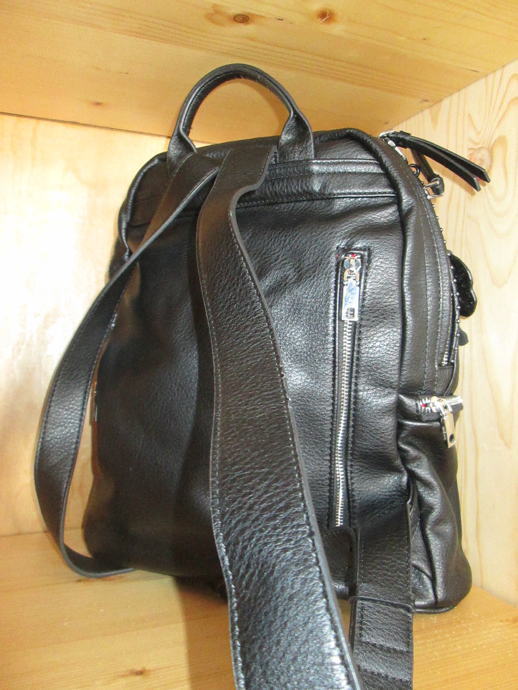Sac à dos de taille moyenne effet cuir avec des clous métallisés et des détails Mickey Mouse, le personnage iconique de Disney, doté de plusieurs poches.