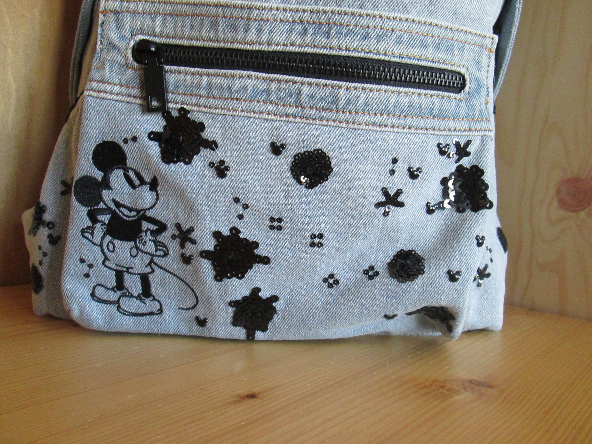 sac à dos en denim avec motifs imprimés de Mickey Mouse™ et détails floraux en sequins