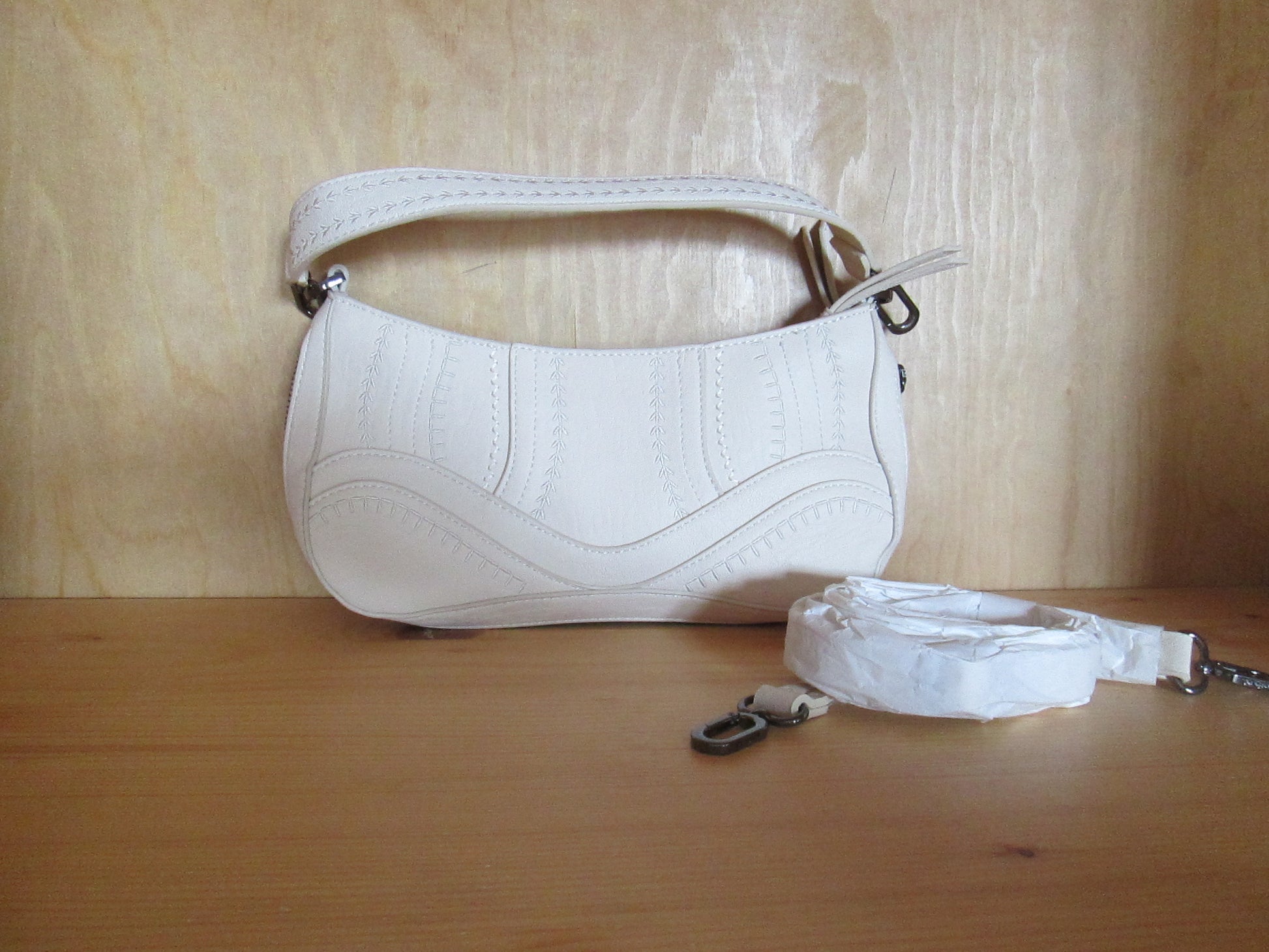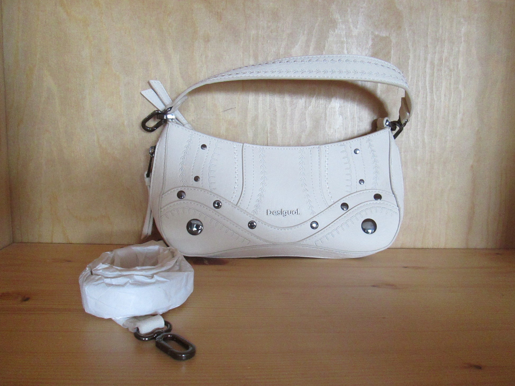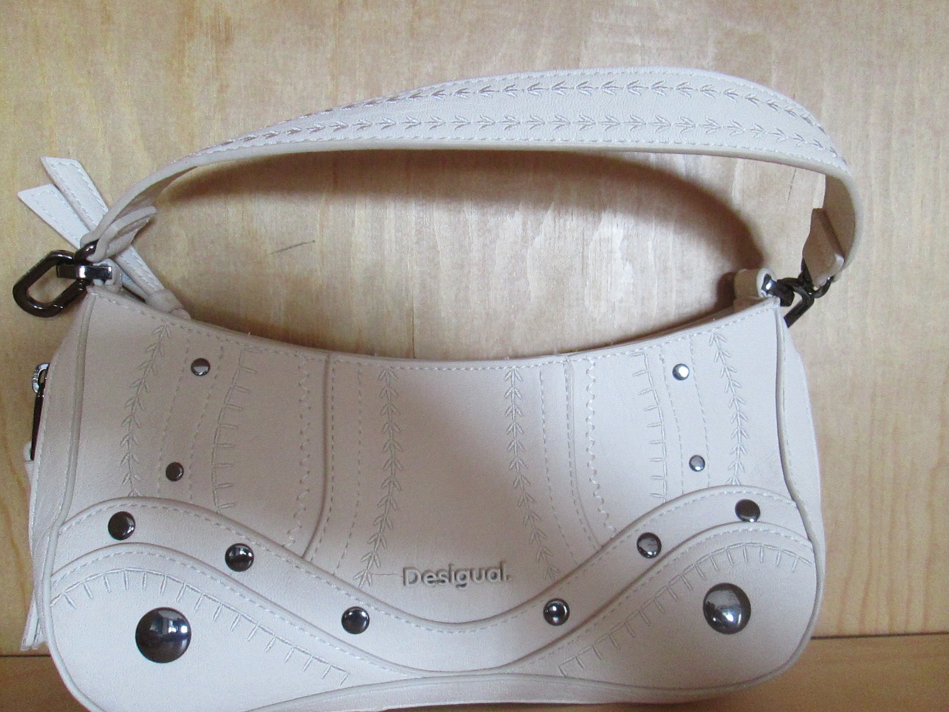 Petit sac bandoulière en simili cuir uni avec effet patch, broderies 3D et détail de clous métalliques.